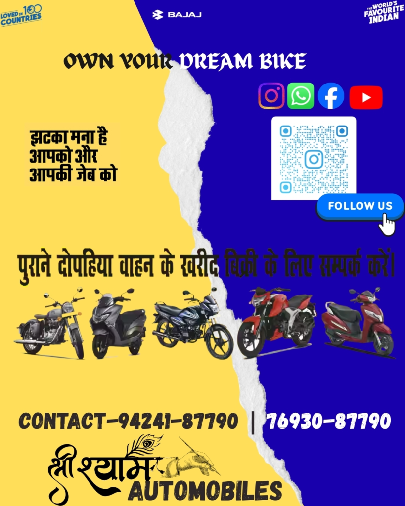 लैलूंगा। क्षेत्र के प्रतिष्ठित वाहन विक्रेता Shree Shyam Automobiles द्वारा ग्राहकों की सुविधा को ध्यान में रखते हुए 🚀 भव्य ‘परिवहन मेला’ का आयोजन किया गया है। इस मेले में सभी प्रमुख कंपनियों की 🏍️ सेकंड हैंड बाइक एवं स्कूटी बेहतरीन कंडिशन में उपलब्ध कराई जा रही हैं।